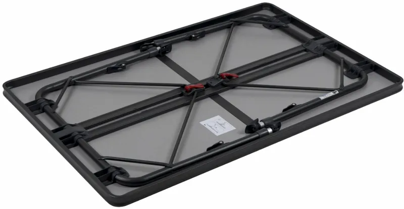 De campingtafel is voorzien van een Melamine tafelblad. Dit tafelblad is water- en hittebestendig. Het Melamine tafelblad in combinatie met het aluminium frame zorgt voor een gewicht van 9,8 kg.