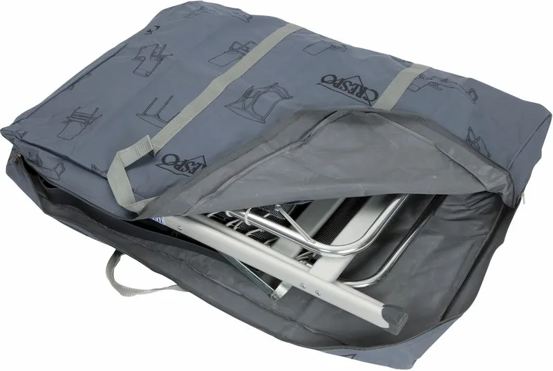 Met deze Crespo draagtas wordt het vervoeren en opbergen van jouw ligstoelen een fluitje van ‘n cent! De luxe draagtas is gemaakt van hoogwaardig 600D polyester waardoor je jarenlang plezier hebt van dit handige accessoire. De ritssluiting en de sterke spanbanden zorgen voor extra gebruiksvriendelijkheid zodat je je ligstoelen probleemloos mee kunt nemen op al je avonturen. Naast het beter kunnen vervoeren van je ligstoelen, zorgt de Crespo draagtas ook voor betere bescherming tegen beschadigingen. Zo houd je je ligstoelen langer netjes en ben je verzekerd van vele zonnige kampeervakanties samen!