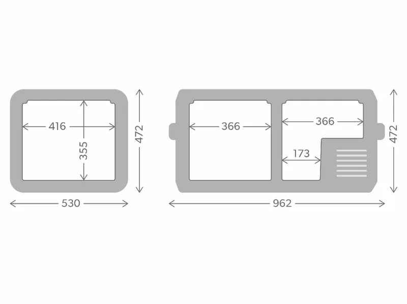 | Binnenmaat koelbox | Compartiment 1: 42 x 37 x 36 cm, Compartiment 2: 42 x 36 x 36 cm | |
