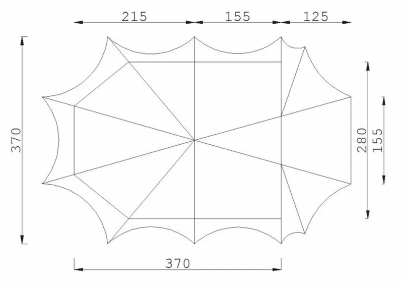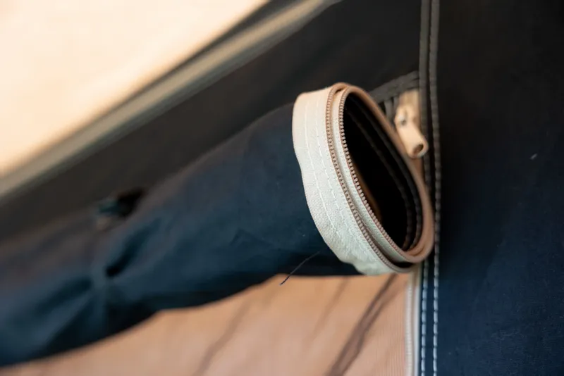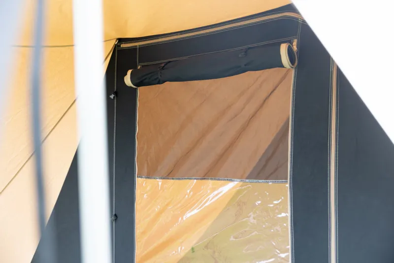 De binnentent van deze piramidetent wordt afgescheiden door een separatiewand. Ook heeft de tent een ingenaaide vaste kuip van zwaar gecoat bisonyl polyester 550 gr/m² en een separatiewand. Hierdoor kan de tent helemaal afgesloten worden voor invloeden van buitenaf. Deze piramidetent heeft dus geen losse binnentent. De afspanpunten hebben geen scheerlijntjes maar sjorbanden met oersterke gespen.