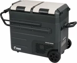 De Eurom Big Fred compressor koelbox mag inderdaad een grote jongen genoemd worden. Hij heeft twee wielen, een beugel en twee handgrepen, zodat je ‘m makkelijk verplaatst. Big Fred heeft een buitenafmeting van 45 x 75 x 60,5 cm en vul je tot 58 liter. Dat is genoeg ruimte voor bijvoorbeeld zes 1,5 liter flessen, samen met 36 (0,33 liter) blikjes! Het eerste vak heeft een binnenafmeting van 31,4 x 23,2 x 49,4 cm en het tweede vak is 31,4 x 23,2 x 31,4 cm. Zo heeft Big Fred genoeg ruimte voor snacks en wat drinken.