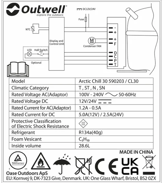 Outwell Arctic Chill 30 compressor koelbox – 29 liter – Blauw