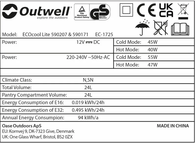 Outwell Ecocool Lite elektrische koelbox – 24 liter – Donkerblauw